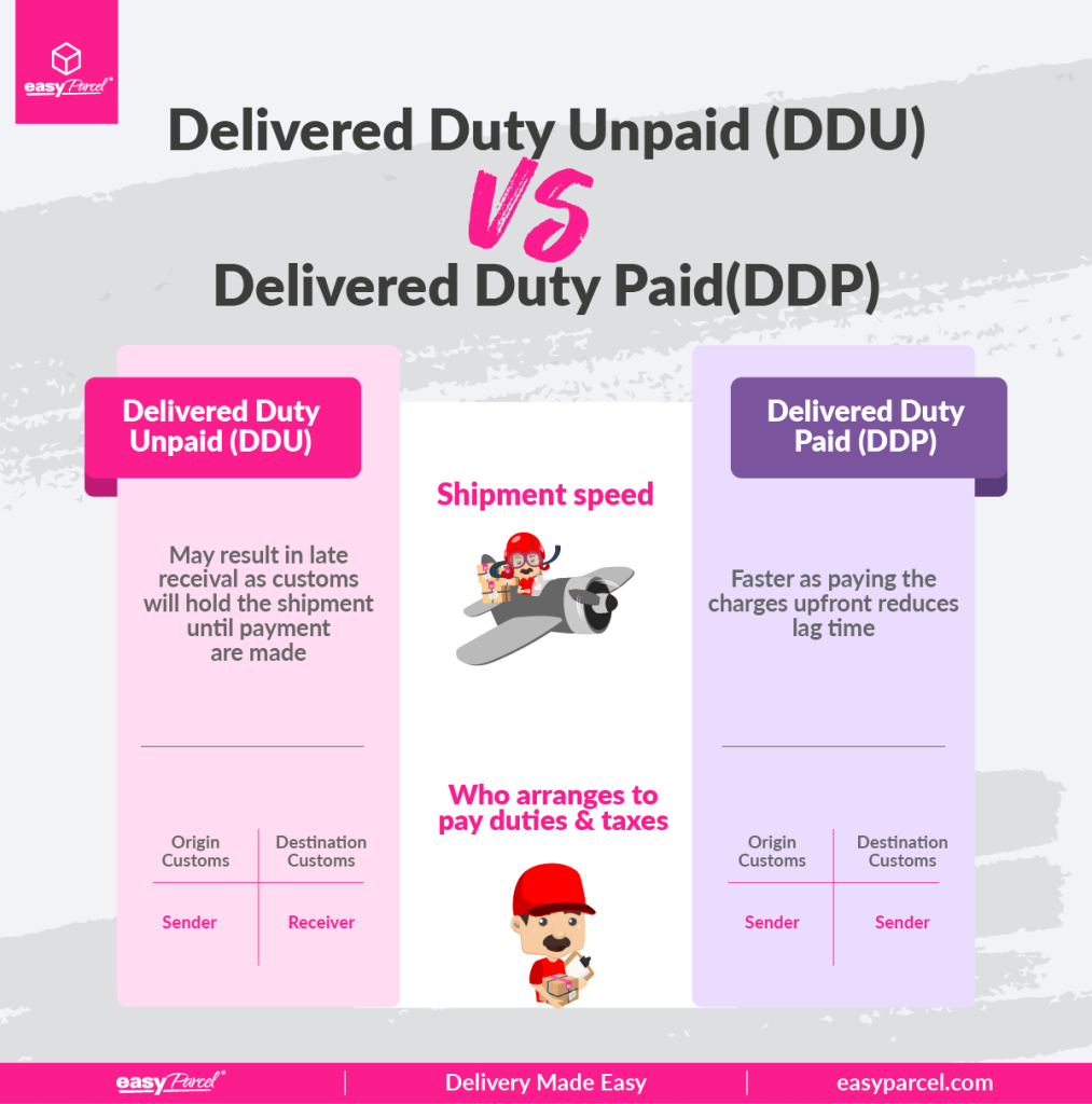 DDP (Deliveries Duty Paid), DDU (Deliveries Duty Unpaid